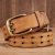 3.8CM Genuine Leather Military Belt with Copper Double Needle Pin Buckle