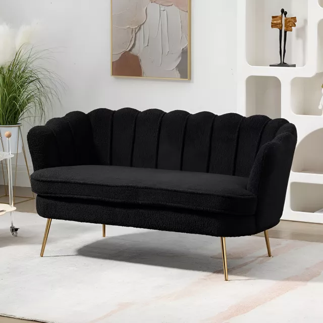 The standout feature of this sofa is its beautifully unique floral back design that sets it apart from ordinary loveseats. While many small sofas sacrifice style for size, this one makes a dramatic statement with its artistic flower-shaped backrest that adds visual interest from every angle. The combination of soft teddy fabric with sleek gold metal legs creates a stunning contrast that feels both cozy and sophisticated. It’s this perfect marriage of artistic design and everyday comfort that makes this loveseat truly special.