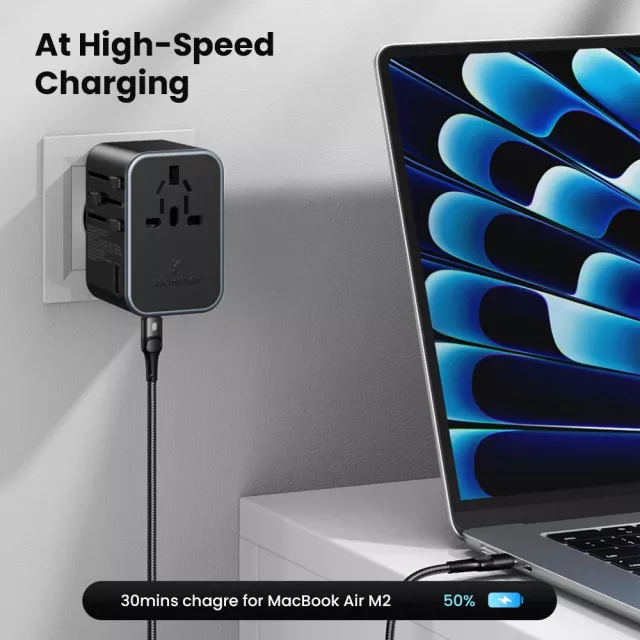Stay charged wherever your adventures take you with this 65W GaN Universal Travel Adapter. Designed for the modern traveler, it combines lightning-fast charging, worldwide compatibility, and compact design into one powerful companion. Whether you’re working abroad, exploring new destinations, or simply staying connected, this travel adapter keeps all your devices ready to go.