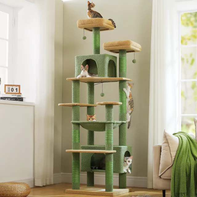 This cat tree is best used as a daily playground and relaxation spot for large or multiple cats. Set it up in your living room, bedroom, or any cozy corner to create a private haven for your feline companions. Its multi-level design encourages exercise, reduces boredom, and helps maintain your cats’ overall well-being.