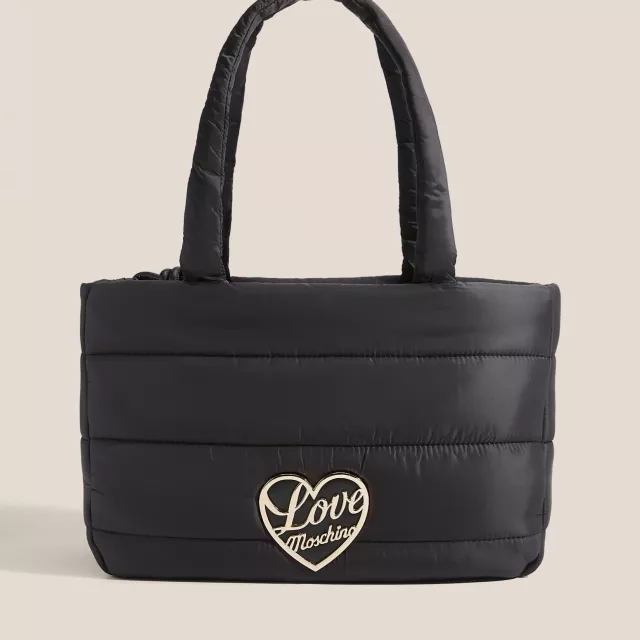 Step into the season with timeless elegance and effortless charm with the Love Moschino Black Nylon Handbag. Designed for the modern woman who loves fashion with a touch of sophistication, this bag combines sleek Italian design with everyday practicality. Its bold black hue and refined structure make it the perfect companion for your fall and winter looks — from cozy knitwear to tailored coats.