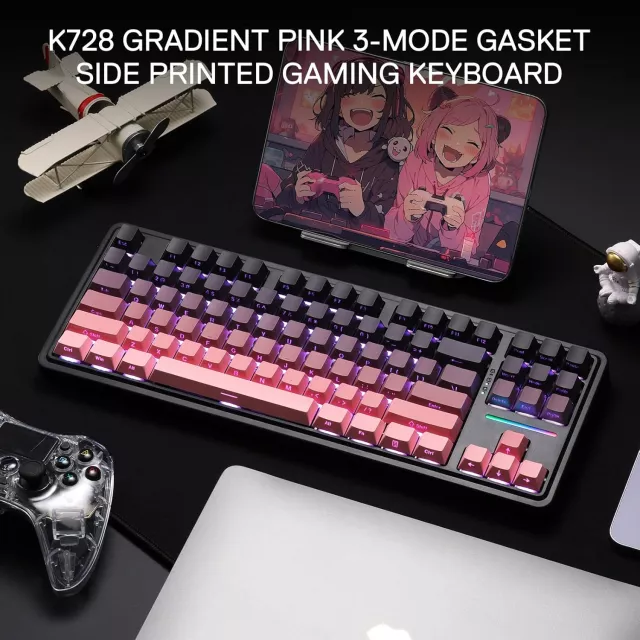 Built for versatility, this keyboard offers 3-mode connectivity—USB-C wired, Bluetooth 3.0/5.0, and 2.4GHz wireless—so you can switch between your PC, laptop, or tablet seamlessly. The gasket-mounted design provides enhanced noise reduction and flexibility, giving you a soft, cushioned feel with every keypress. Plus, its south-facing LED lighting ensures brilliant illumination and visibility for late-night battles or dimly lit workspaces.